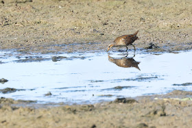 This individual was happy coming out into the open and feeding along the muddy banks of a small pool, alongside the coots and waders.